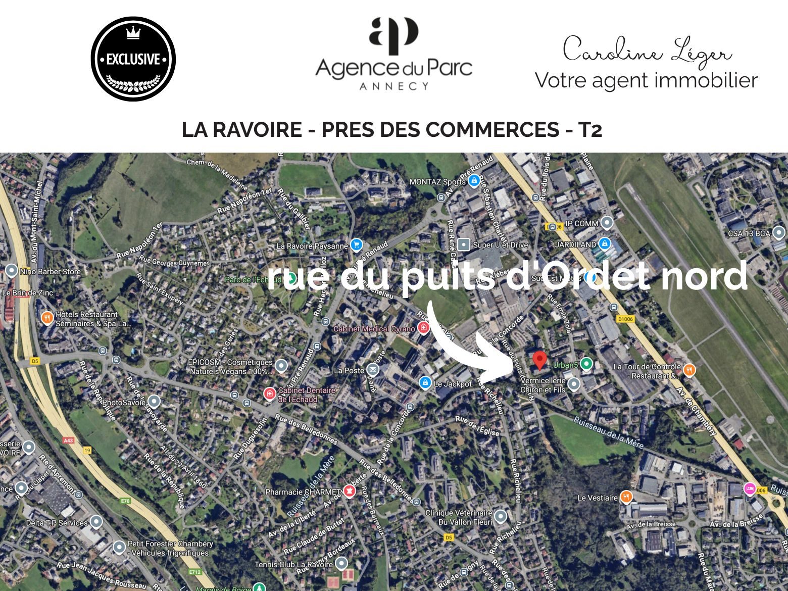 EXCLUSIVITÉ À La Ravoire, 85 rue du puits d'Ordet nord, à proximité des commerces, des écoles et de Chambéry, au 1er étage d'un immeuble en copropriété édifié en 2017, bien tenu et entretenu, un appartement de type 2, d'une surface habitable loi Carrez de 42,56 m2, exposé nord-est, il se compose ainsi : une entrée avec placard, une cuisine ouverte sur le séjour de 20 m2 donnant sur le balcon de 6 m2, une chambre de 12 m2 donnant sur le balcon, une salle de bains comprenant meuble vasque et baignoire et un WC indépendant,
