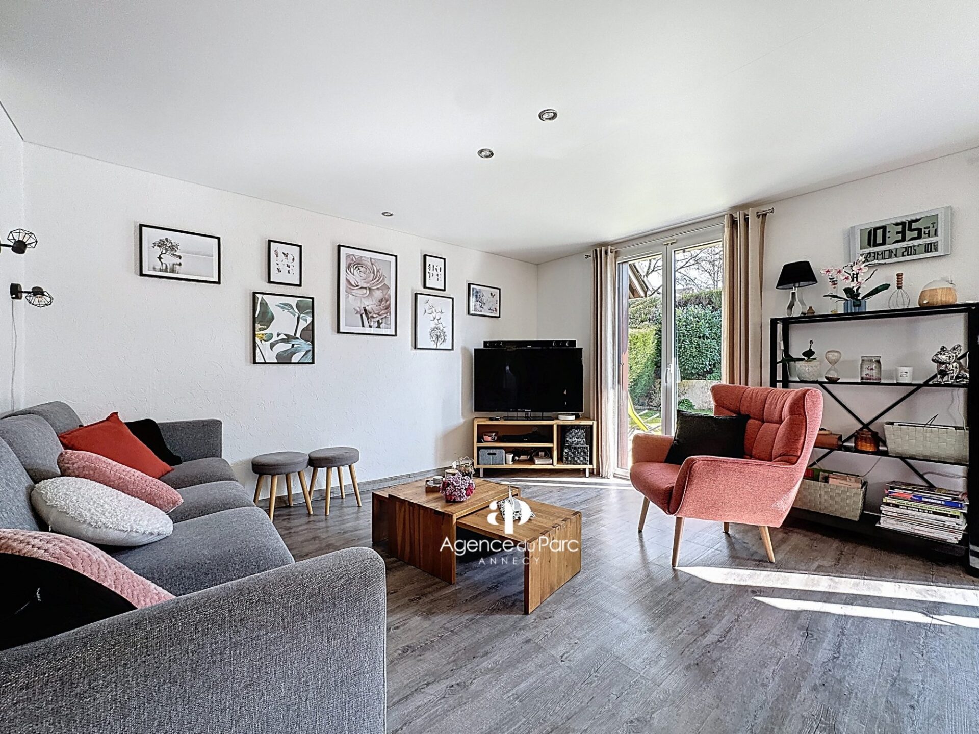Située à Poisy, à environ 700 mètres des commerces de Poisy, de ses écoles maternelles et primaires, à 9 km d’Annecy, 3 km de la zone commerciale d’Epagny et à 5 km des axes autoroutiers, sur un terrain de 220 m2, plat, clos et arboré, mitoyenne par le garage, édifiée en 1987 environ, dans un lotissement, en copropriété horizontale, d’une surface habitable de 111,25 m2 environ et plus de 140 m2 au sol, comprenant 4 chambres, exposée est, lumineuse, sur 3 niveaux, elle se compose ainsi :