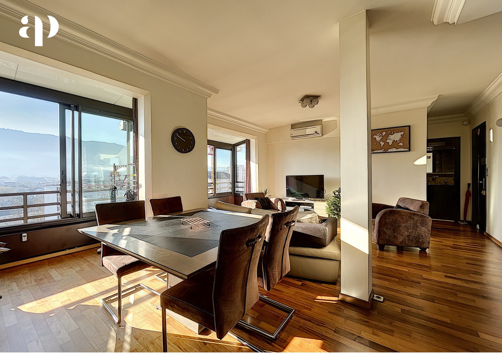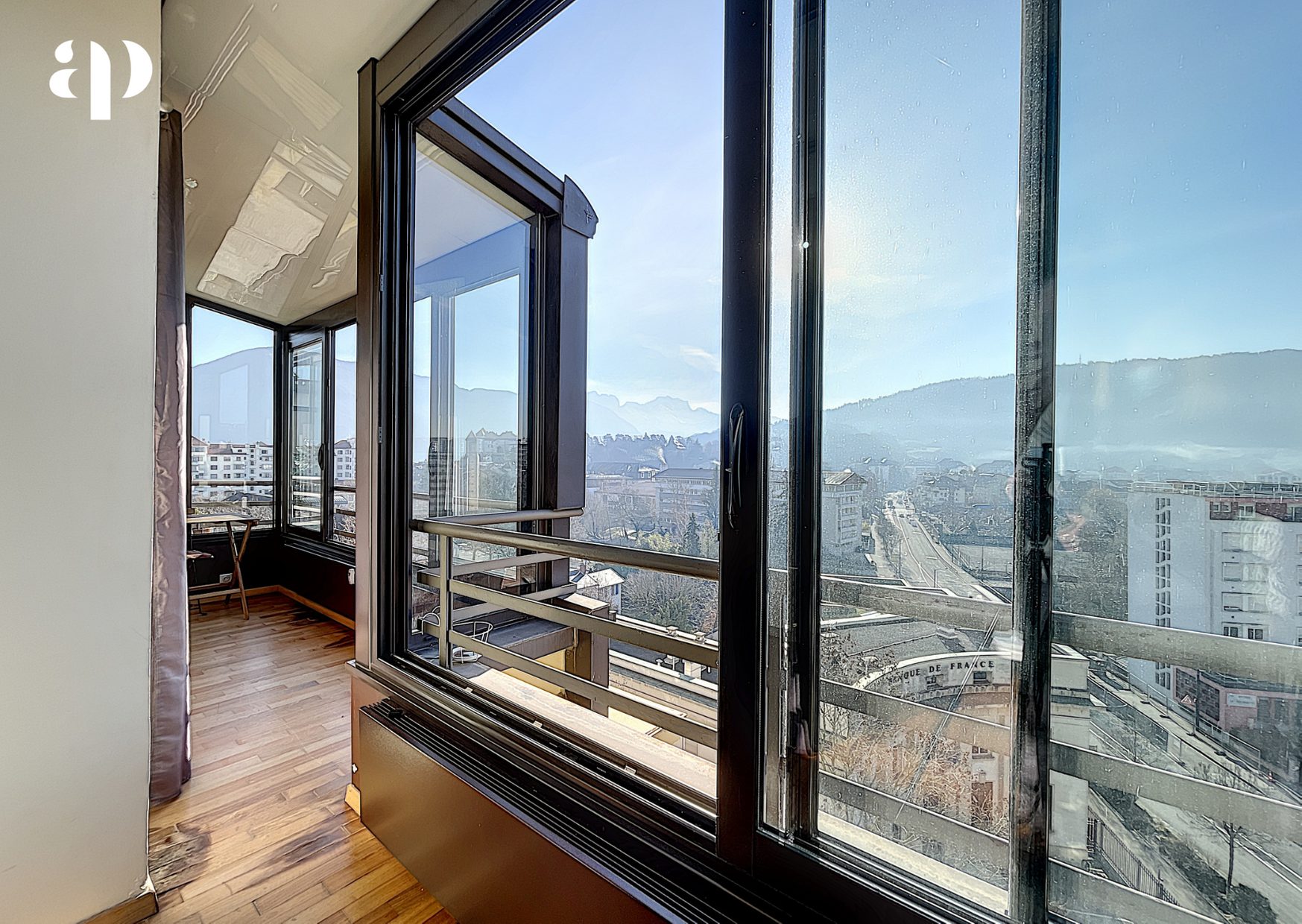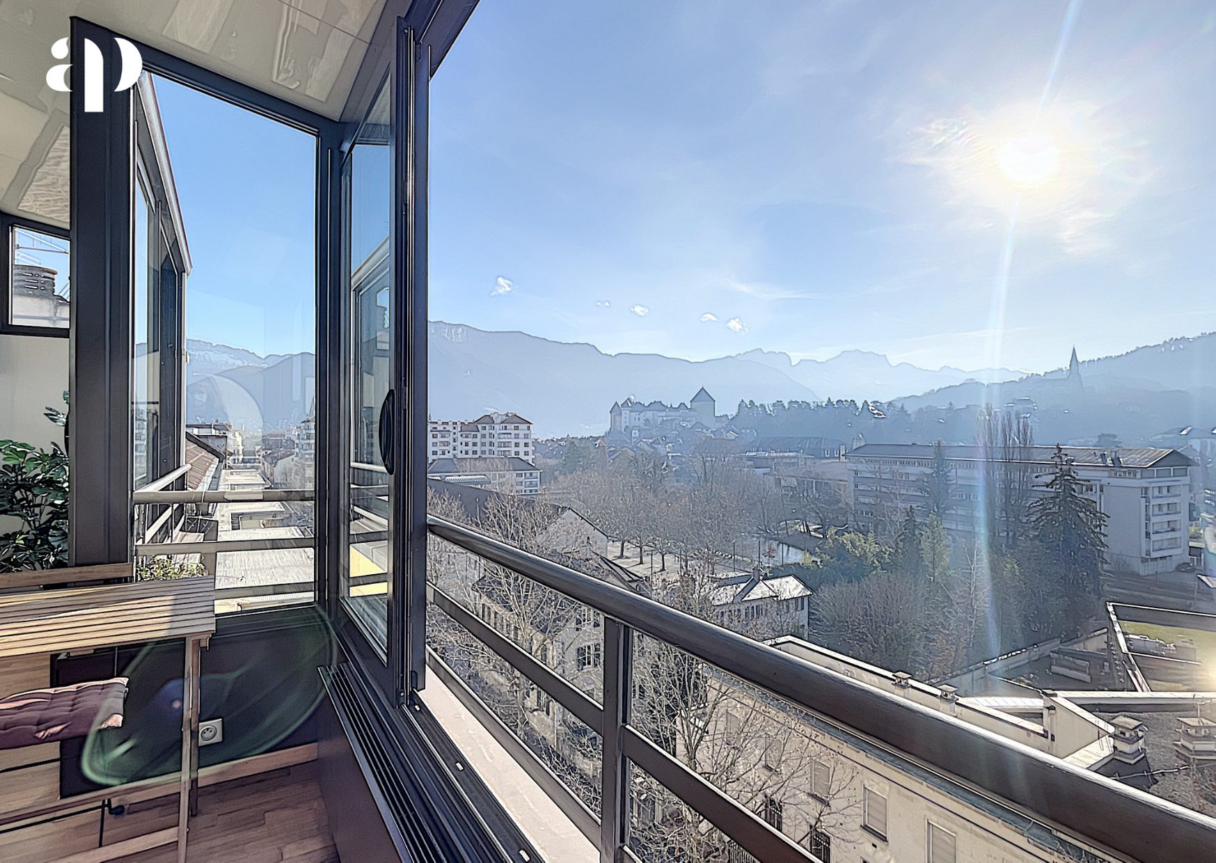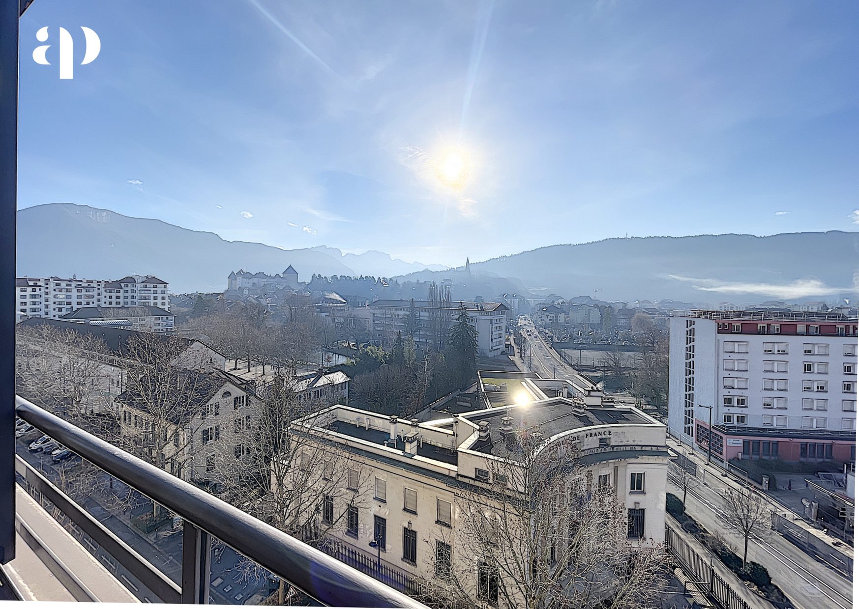 En exclusivité, à Annecy, au 22 avenue de Chambéry, en plein centre ville, dans une copropriété édifiée en 1951, avec digicode et ascenseur, au 7ème et dernier étage, un appartement de type 2 de 50 m² habitables, en excellent état, lumineux et ensoleillé, avec vue superbe sur le château et les montagnes, en meublé, il se compose de : - une entrée, - une cuisine équipée ouverte sur le salon séjour exposé plein sud (33 m²), - un cellier, - une chambre avec placard dressing (9,51 m²), - une salle de bains avec douche, - un WC, - une loggia. En annexe, un local à vélo. Pas de cave. Garage fermé avenue du Rhône avec porte automatique (150 € en plus). - Chauffage compris dans les charges (150 € par mois en + du loyer de 924 euros). - Eau chaude individuelle (ballon d'eau chaude) Visite virtuelle sur le site agence du parc annecy et vidéo. Plan 2 D et certificat d'ensoleillement et de luminosité en photos. A votre disposition pour tout renseignement. Caroline LEGER - Agence du Parc - 06 80 33 66 88