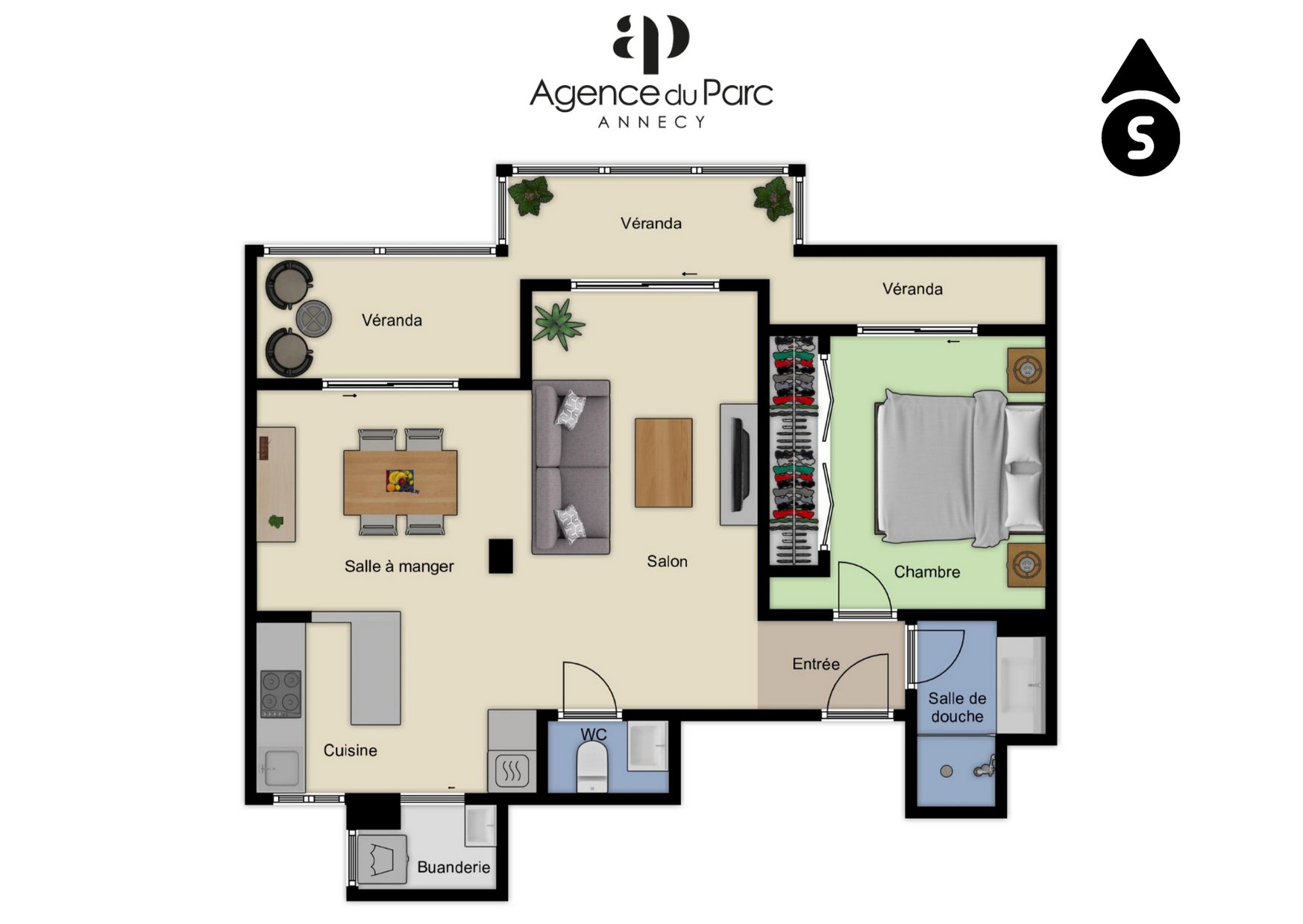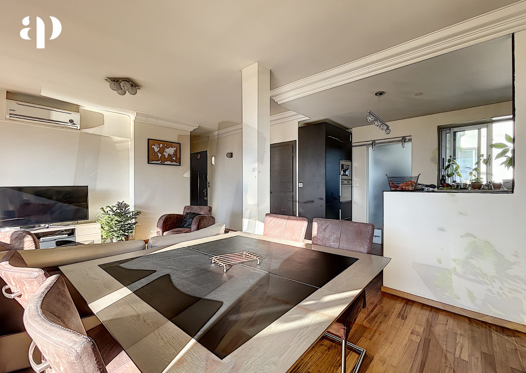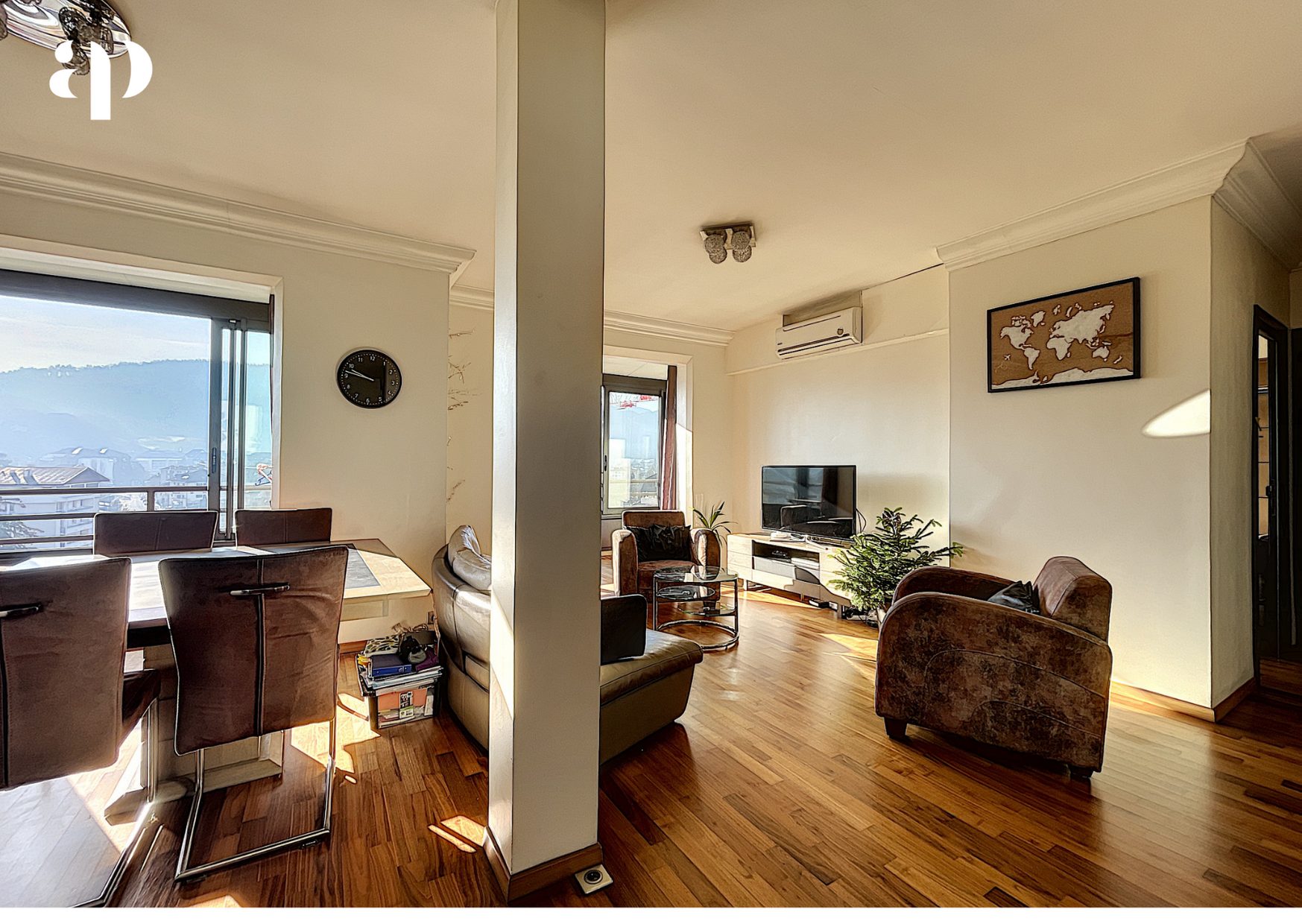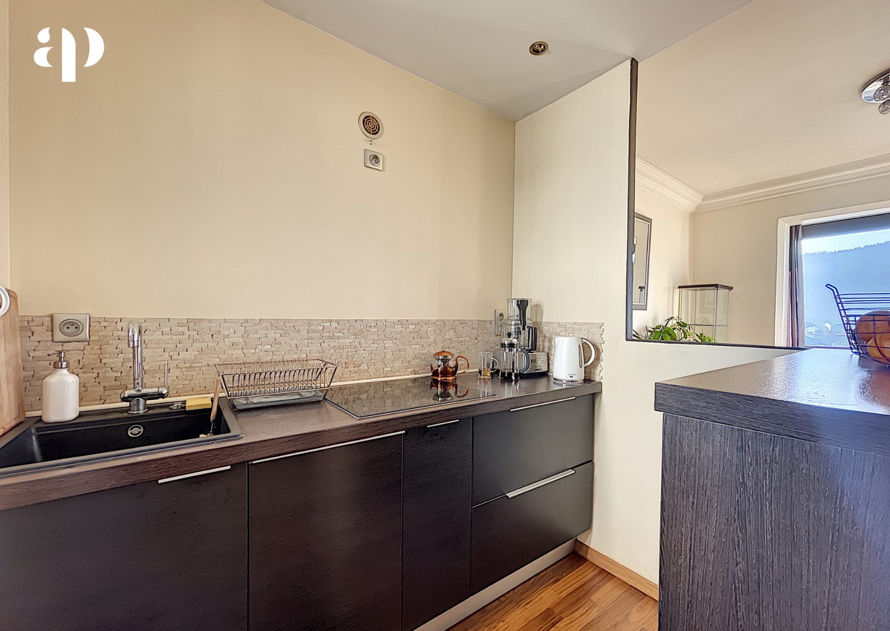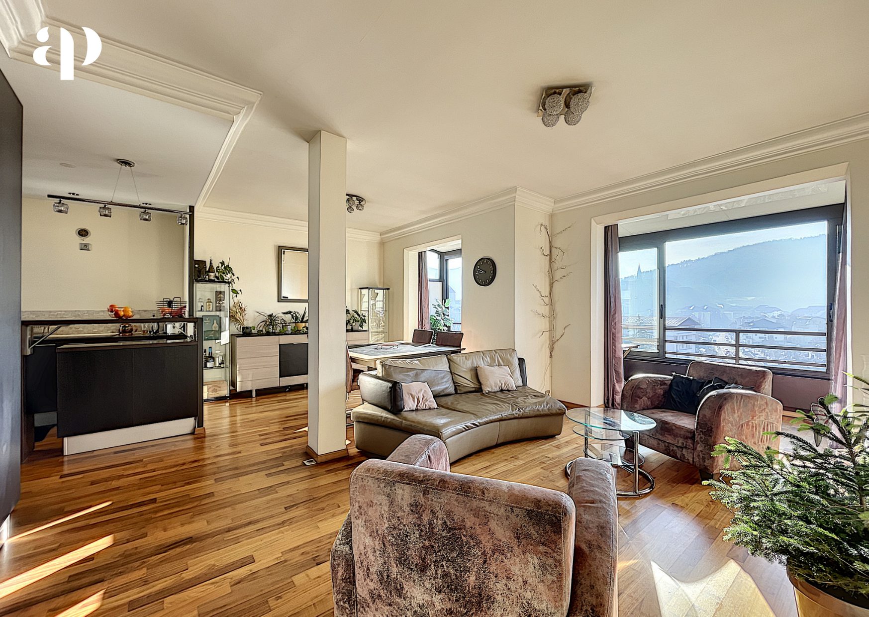 En exclusivité, à Annecy, au 22 avenue de Chambéry, en plein centre ville, dans une copropriété édifiée en 1951, avec digicode et ascenseur, au 7ème et dernier étage, un appartement de type 2 de 50 m² habitables, en excellent état, lumineux et ensoleillé, avec vue superbe sur le château et les montagnes, en meublé, il se compose de : - une entrée, - une cuisine équipée ouverte sur le salon séjour exposé plein sud (33 m²), - un cellier, - une chambre avec placard dressing (9,51 m²), - une salle de bains avec douche, - un WC, - une loggia. En annexe, un local à vélo. Pas de cave. Garage fermé avenue du Rhône avec porte automatique (150 € en plus). - Chauffage compris dans les charges (150 € par mois en + du loyer de 924 euros). - Eau chaude individuelle (ballon d'eau chaude) Visite virtuelle sur le site agence du parc annecy et vidéo. Plan 2 D et certificat d'ensoleillement et de luminosité en photos. A votre disposition pour tout renseignement. Caroline LEGER - Agence du Parc - 06 80 33 66 88