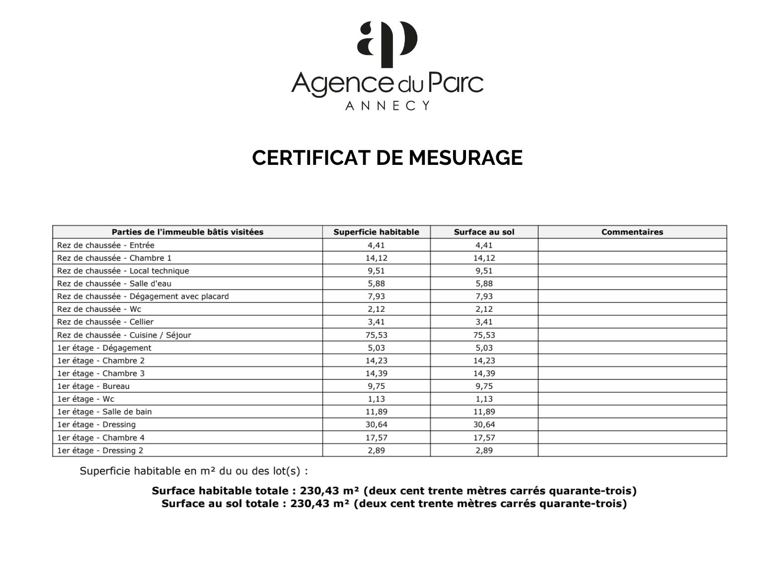 - Au rez-de-chaussée : une entrée, une chambre de 14,12 m2, une cuisine équipée ouverte sur le salon séjour de 75,53 m2, un cellier, un dégagement avec placards, un WC indépendant avec lave-mains, une salle d’eau avec douche, un local technique, et une cave,