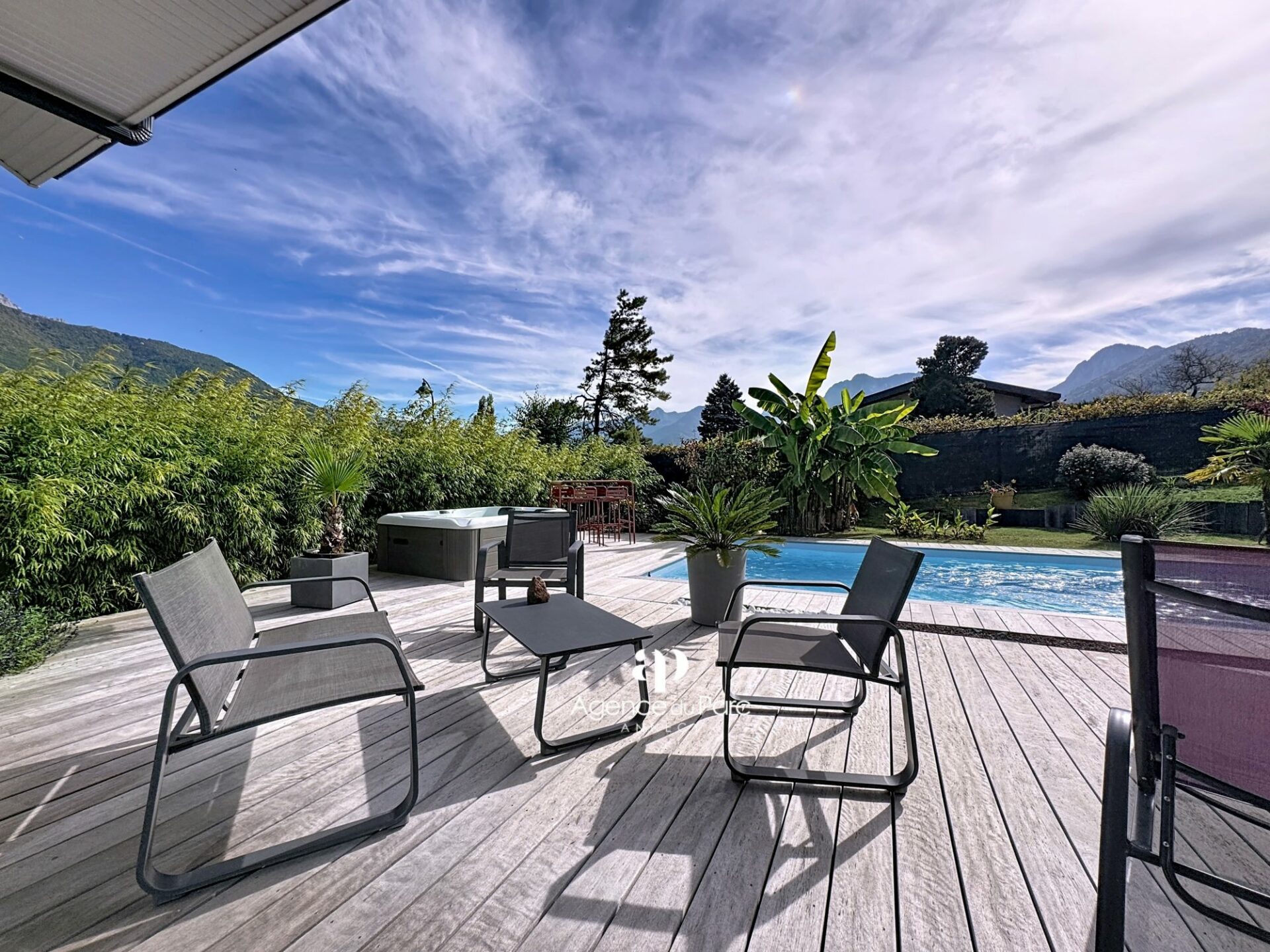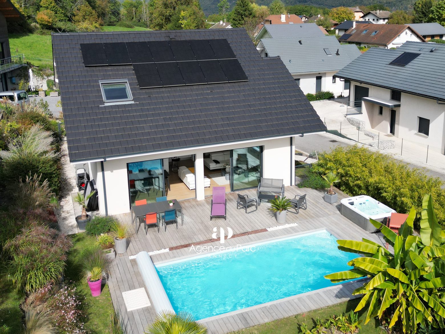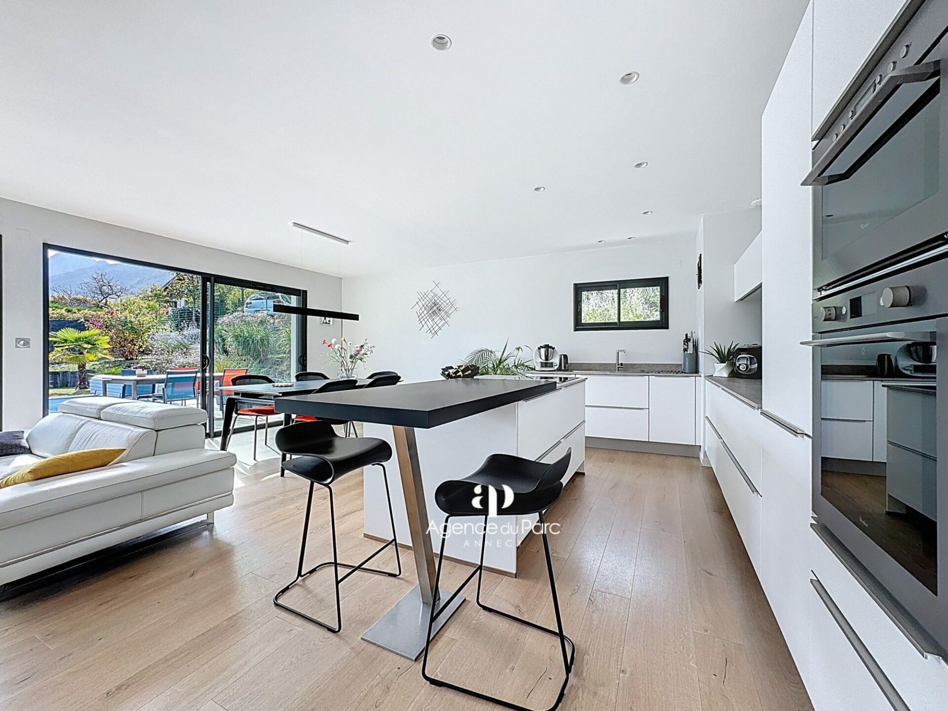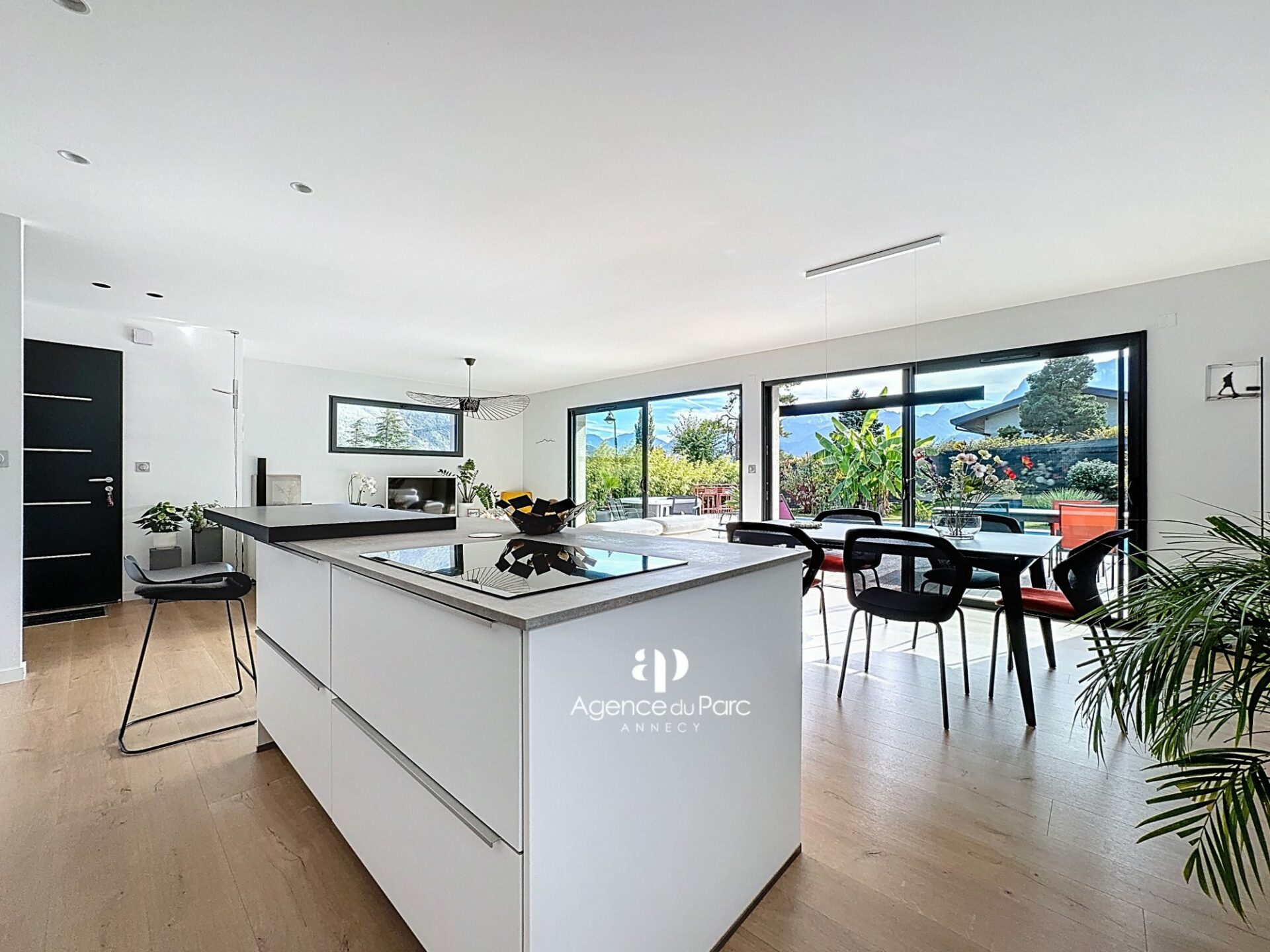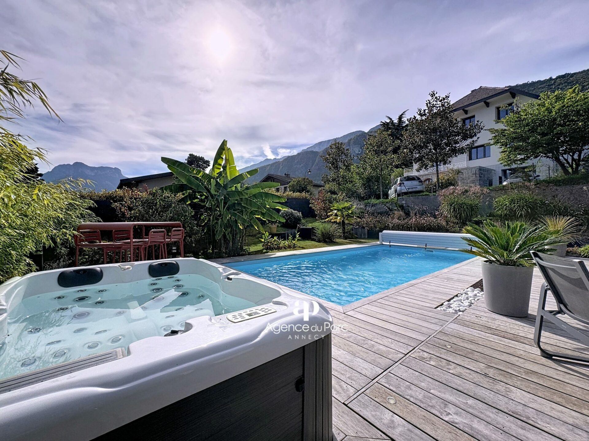 À Doussard, dans le secteur du Chaparon, dans un environnement résidentiel recherché, sur la rive ouest du lac proche d’Annecy, des commerces et des axes routiers, entre Duingt et le centre de Doussard, au calme, votre future villa, avec vue sur les montagnes environnantes, sur un terrain de 585 m² environ, plat, paysager et en grande partie clos, exposée plein sud, indépendante sur deux niveaux, édifiée en 2019, d’une surface habitable de 111,95 m² environ, parfaitement bien équipée et soignée, aux prestations modernes offre un grand confort de vie, elle comprend :