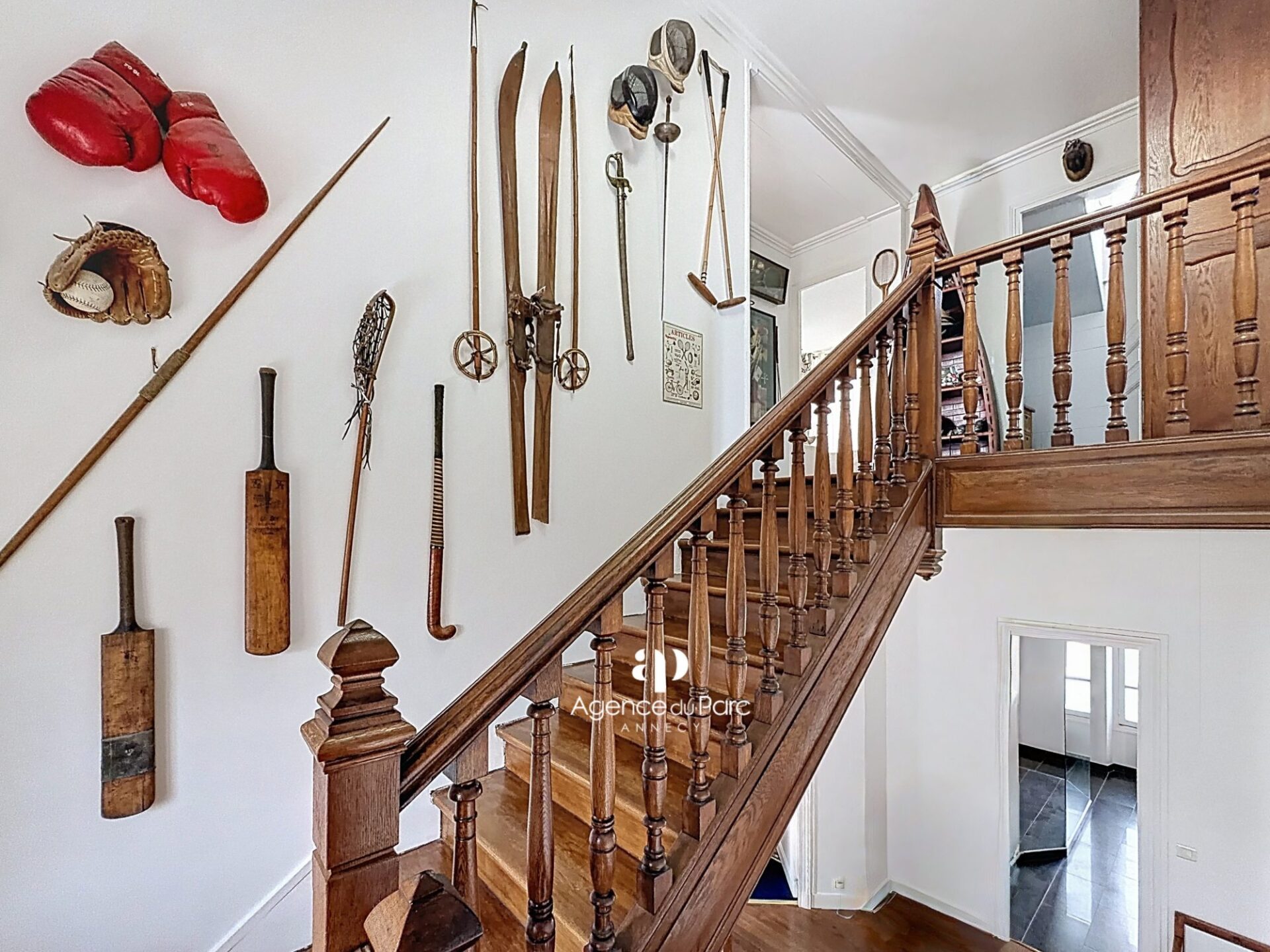 Située à Saint-Maur-des-fossés, à proximité des écoles, des commerces, du RER et de l'autoroute A4, indépendante, sur un terrain de 700 m2 environ, plat, clos et arboré, avec 2 places de parking extérieures, édifiée en 1935 environ, une villa meulière, sur 3 niveaux + sous-sol, d’une surface habitable de 272 m2 environ et 364 m2 au sol, exposée sud-est, elle comprend :