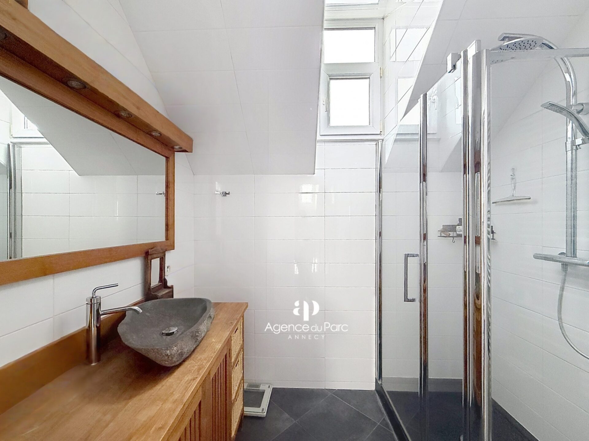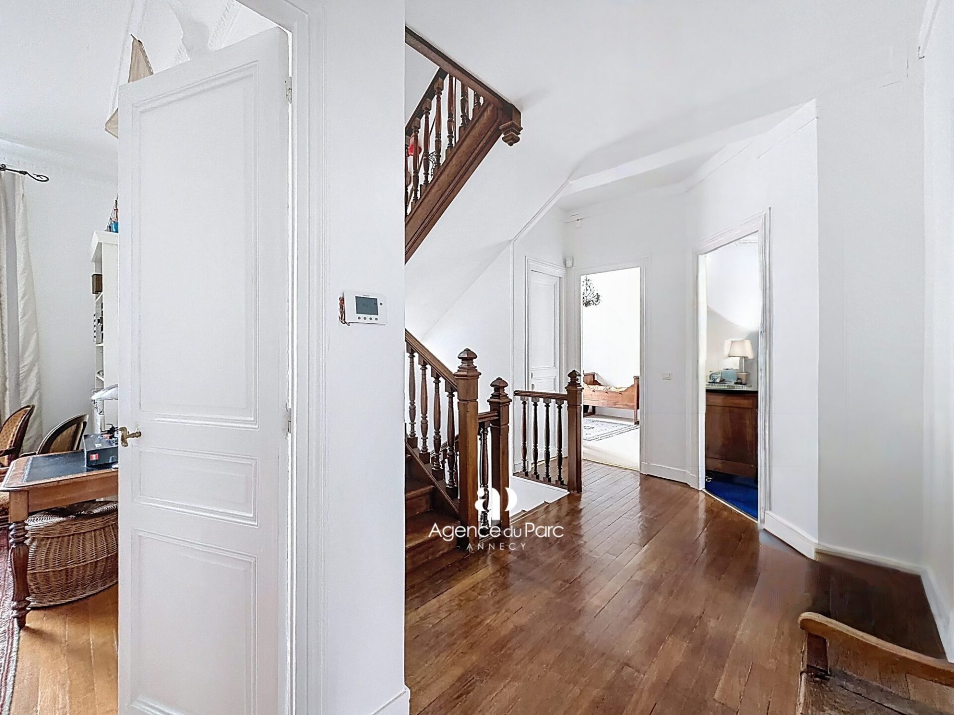 à l’étage, quatre chambres de 20,65, 13,3, 13,04 et 12,21 m2 dont une parentale avec cheminée et sa salle d'eau comprenant douche, baignoire et meuble vasque, une salle d'eau comprenant douche, meuble vasque et WC et un WC indépendant,