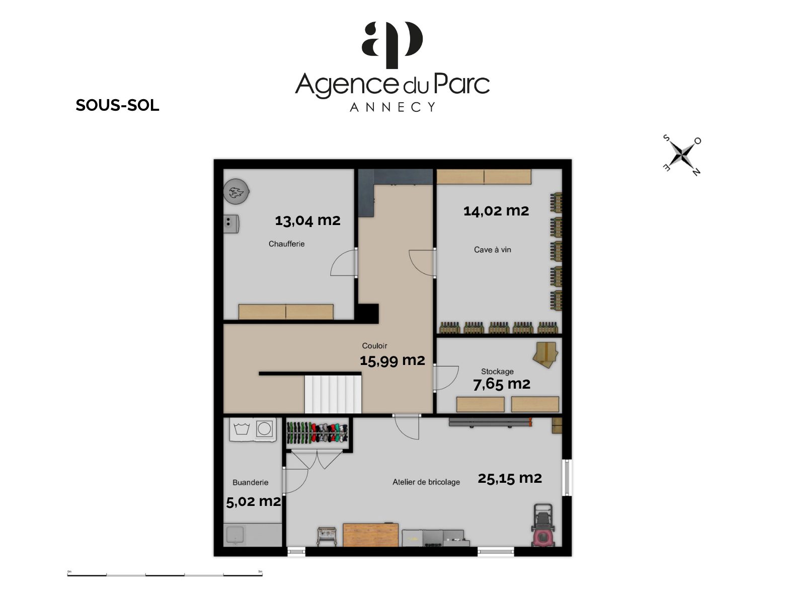 au sous-sol, une cave à vin, une chaufferie, une buanderie, un atelier et une pièce de stockage,
