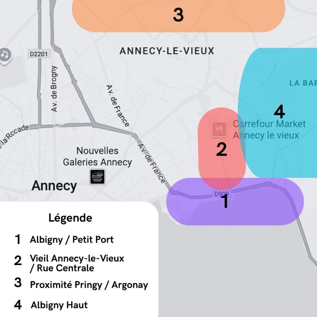 Rues historiques, petites copropriétés de caractère et adresses commerçantes donnent un vrai cachet à des zones comme la rue Centrale et de l’église d’Annecy-le-Vieux, mais aussi le quartier d’Albigny ou l’axe des Pommaries, tout en restant proches du centre d’Annecy et des axes routiers.